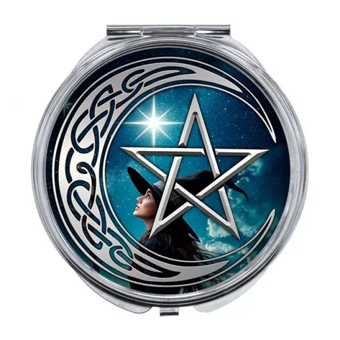 Складное зеркало для сувенирных и декоративных целей из металла и стекла с нанесённым изображением.