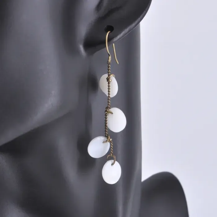 Серьги Гроздь — металлический аксессуар с покрытием под бронзу и пластиковыми вставками, на петле (крючке).