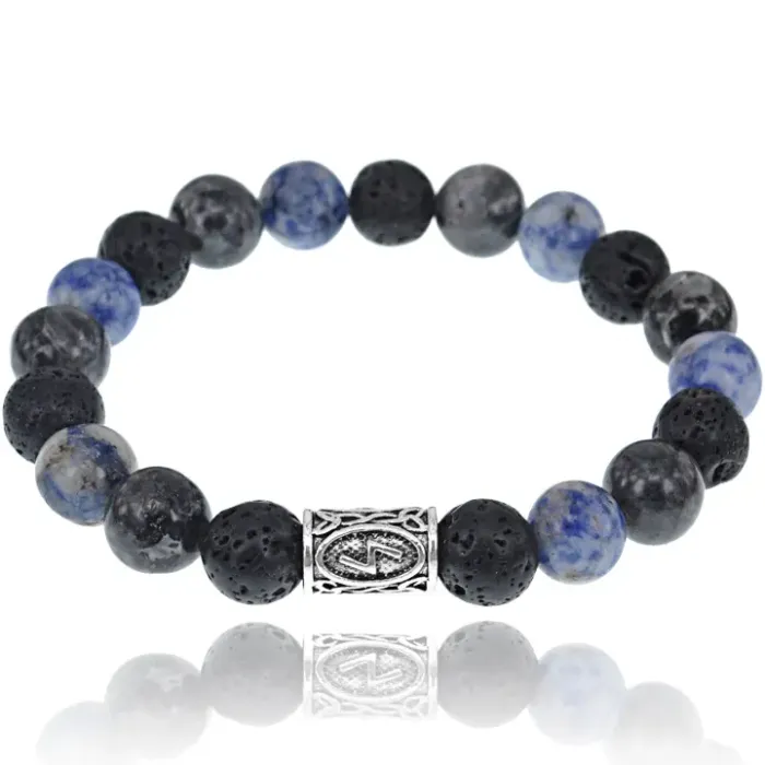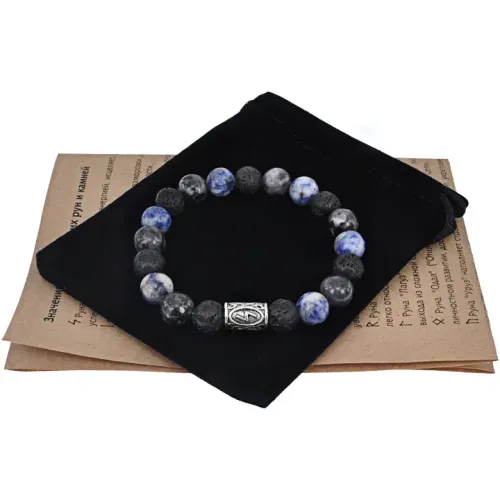 Рунический браслет Соулу — это уникальное украшение, которое сочетает в себе силу и энергетику натуральных камней: Лабрадора, Лавы и Содалита. Этот амулет традиционно используется для привлечения удачи и успеха, а также для укрепления здоровья.