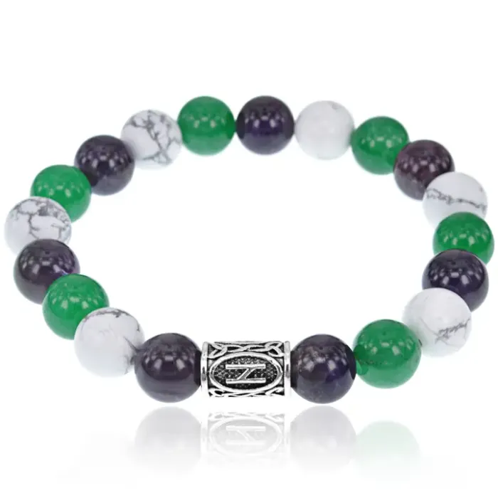 Рунический браслет Хагалаз с натуральными камнями Аметист, Кахолонг и Нефрит — это уникальный аксессуар, который не только украшает, но и защищает. С древних времен руна Хагалаз символизирует защиту от негативного воздействия, создавая мощный оберег для своего обладателя.