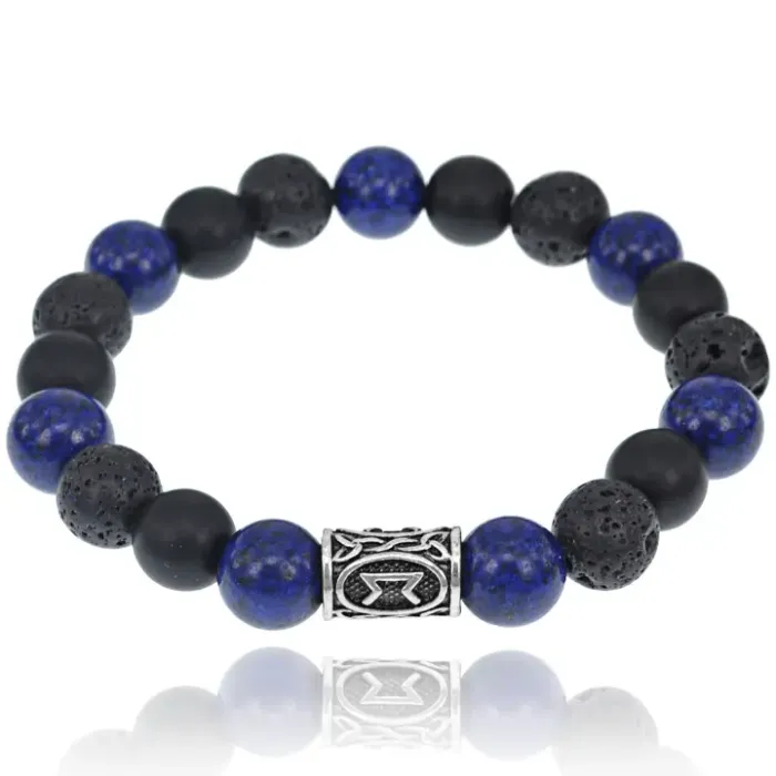 Рунический браслет из натуральных камней: лавы, лазурита и шунгита.