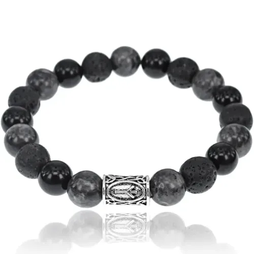 Рунический браслет Альгиз с натуральными камнями Лабрадор, Лава и Чёрный агат — это не просто украшение, а мощный оберег. Он символизирует защиту от зла и негативных влияний, помогает контролировать эмоции и предостерегает об опасностях.