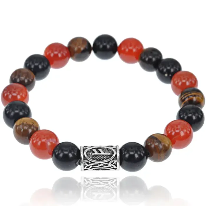 Рунический браслет Феху — это мощный амулет, который традиционно используется для привлечения удачи, богатства и благополучия. Изготовленный из натуральных камней: Сердолика, Тигрового глаза и Чёрного агата, он помогает в карьере и бизнесе, способствует достижению целей и обретению любви.