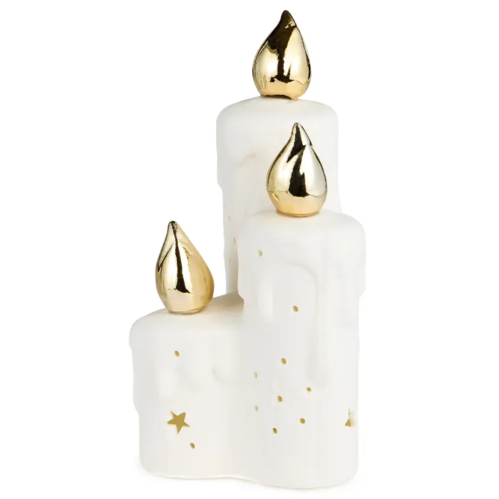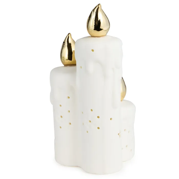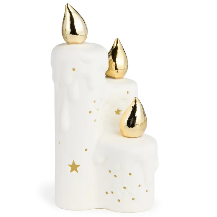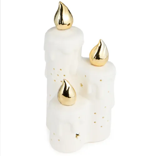 Статуэтка свечи с LED-подсветкой от Lefard — это декоративный элемент, который сочетает в себе эстетику и функциональность. Изготовленная из белоснежного фарфора с золотыми деталями, она привносит уют и атмосферу праздника в любое пространство. Встроенная LED-подсветка создает эффект мерцающего пламени, обеспечивая безопасное и экономичное освещение.