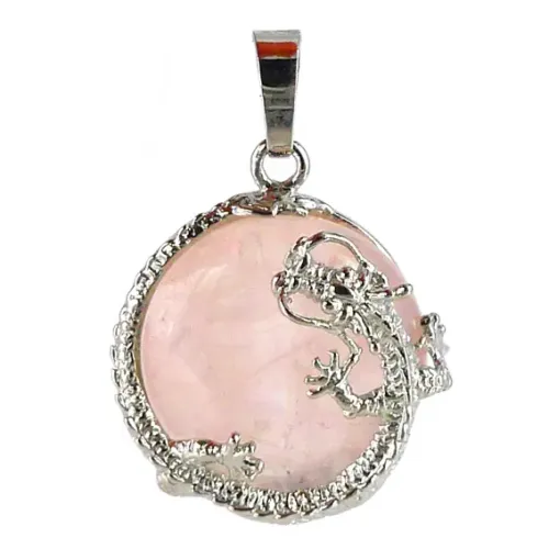 Амулет Розовый кварц с Драконом 35х25мм, камень, металл A117-15