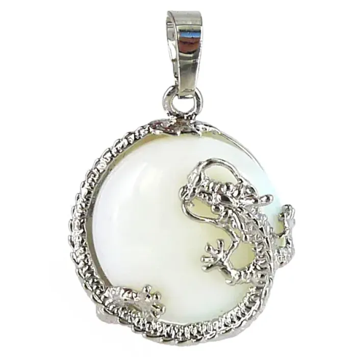 Амулет Лунный Камень с Драконом 35х25мм, камень, металл A117-17