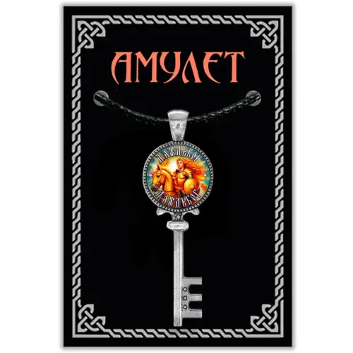 Кулон-амулет из бижутерного сплава под серебро с изображением Даждьбога. Изображение защищено выпуклой стеклянной линзой.