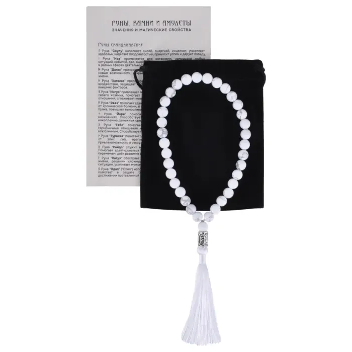 Размеры и комплектация: Высота чёток около 22,5 см, диаметр бусин 8 мм. Размер рунической бусины 12,5х7,5 мм.