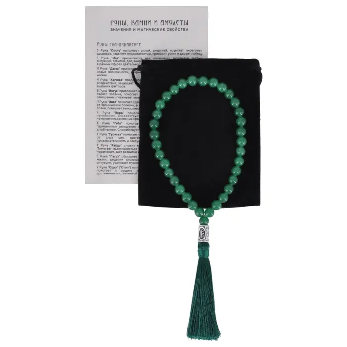 Размеры и комплектация: Высота около 22,5 см, диаметр бусин 8 мм, размер рунической бусины 12,5х7,5 мм.