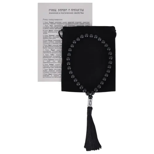 Размеры и комплектация: Высота чёток ~22.5 см, диаметр бусин 8 мм, размер рунической бусины 12.5х7.5 мм.