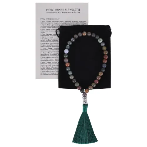 Рунические четки Феху, Яшма индийская 8мм CHR-01-09