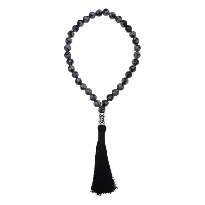 Рунические четки Феху, Обсидиан снежный 8мм CHR-01-11