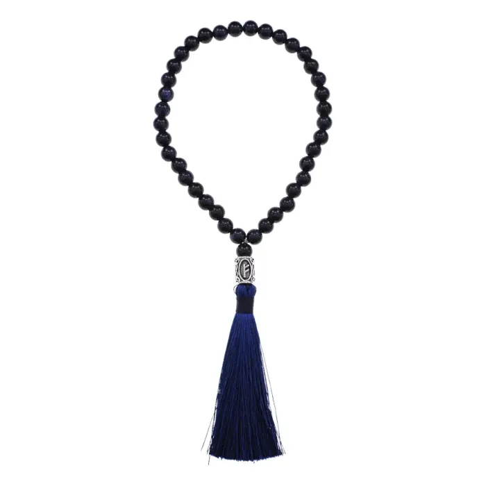 Рунические чётки с бусинами из синтетического синего авантюрина и руной Феху.