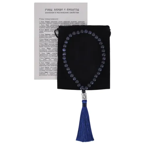 Размеры и комплектация: Высота чёток ~22.5 см, диаметр бусин 8 мм, размер рунической бусины 12.5х7.5 мм.