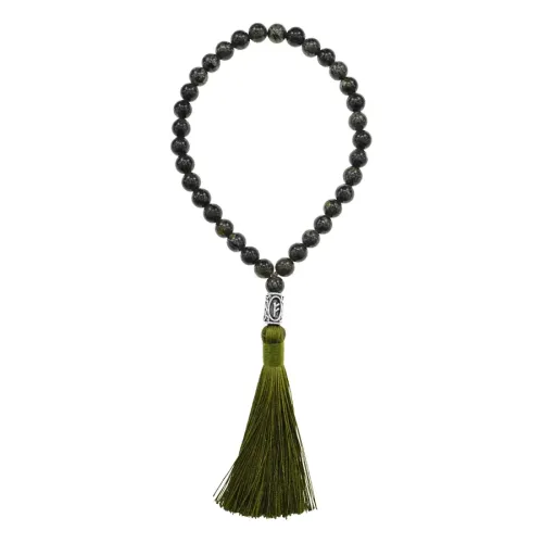 Чётки ручной работы из натурального змеевика с рунической бусиной Феху.