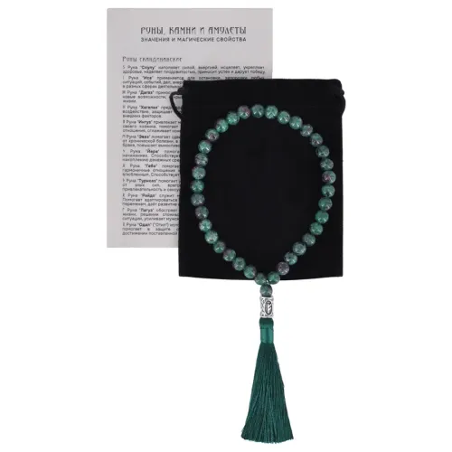 Размеры и комплектация: Высота чёток примерно 22.5 см, диаметр бусин 8 мм, размер рунической бусины 12.5х7.5 мм.