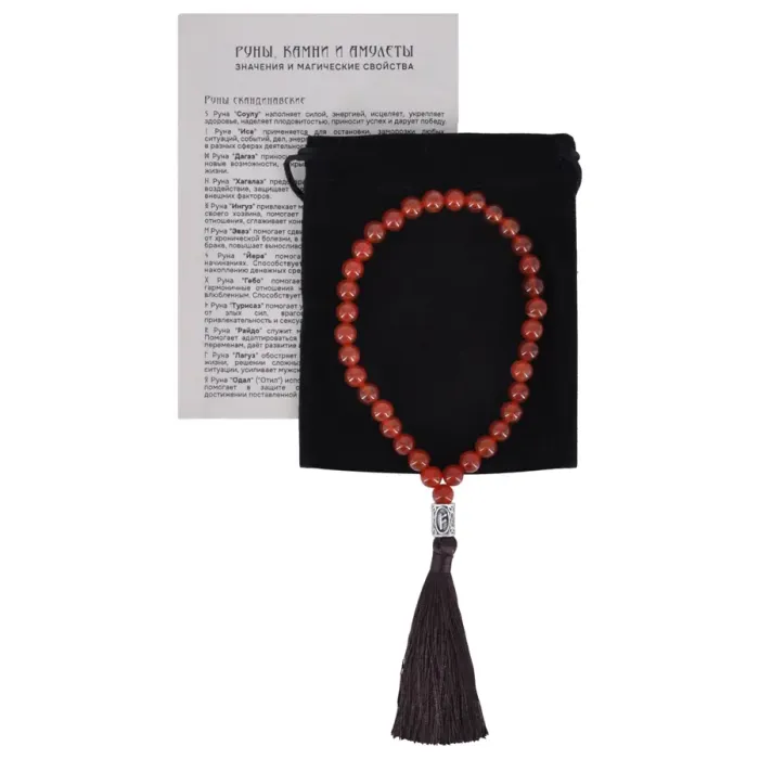 Рунические чётки ручной работы с бусинами из натурального сердолика и отдельной рунической бусиной.