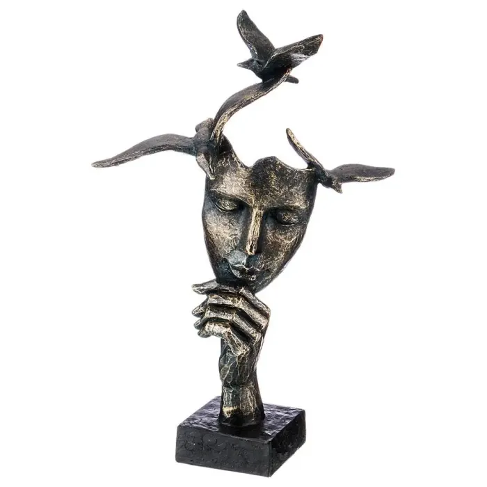 Статуэтка Мысли из серии Фьюжн от Lefard представляет собой уникальное сочетание различных стилей, что делает её идеальным элементом декора для любого интерьера. Этот предмет искусства отражает концепцию гармонии и целостности, несмотря на разнообразие деталей.