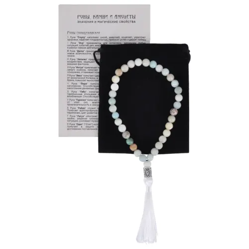 Рунические чётки из натурального амазонита с бусиной в виде руны Феху.