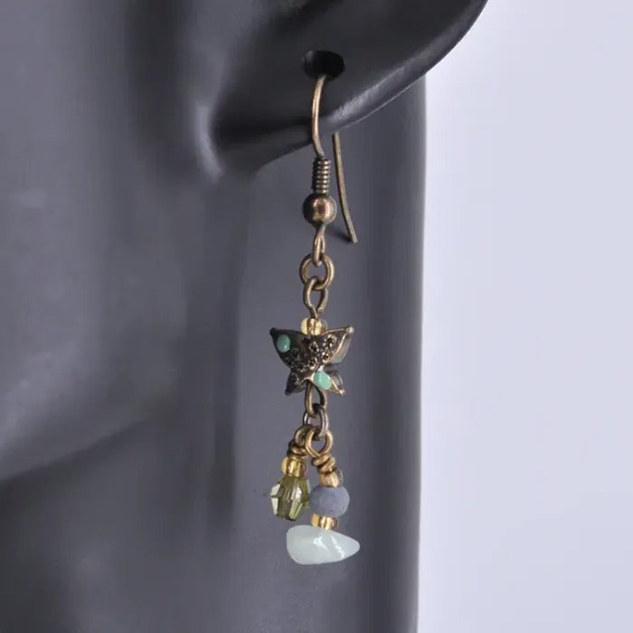 Серьги в виде бабочки из металла с декоративными вставками.