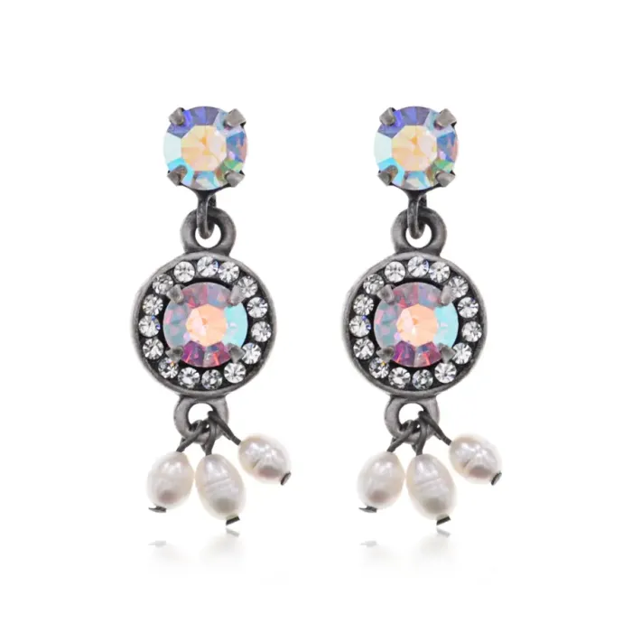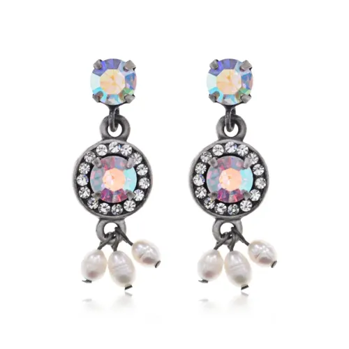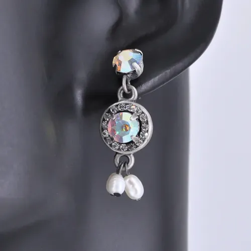 Серьги с жемчугом, кристаллами и стразами, 3х1х1см UD325