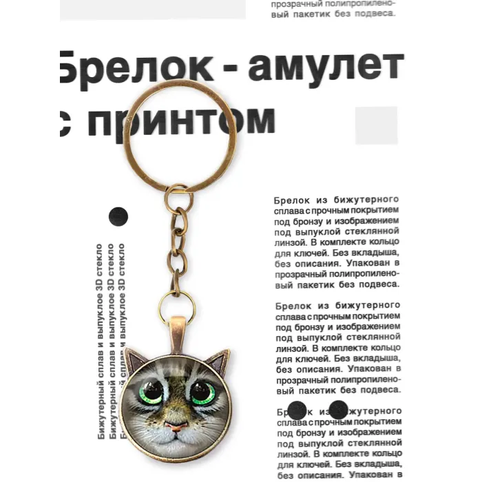 Брелок Кот BK-ALK704 — это стильный аксессуар, который станет отличным подарком или элементом личного стиля. Изготовленный из бижутерного сплава с прочным покрытием под бронзу, он отличается долговечностью и привлекательным внешним видом. Изображение под выпуклой стеклянной линзой добавляет оригинальности и шарма. В комплекте предусмотрено кольцо для ключей, что делает его практичным в использовании. Упаковка выполнена в виде прозрачного полипропиленового пакетика без подвеса, что позволяет сохранить товар в идеальном состоянии до момента использования.