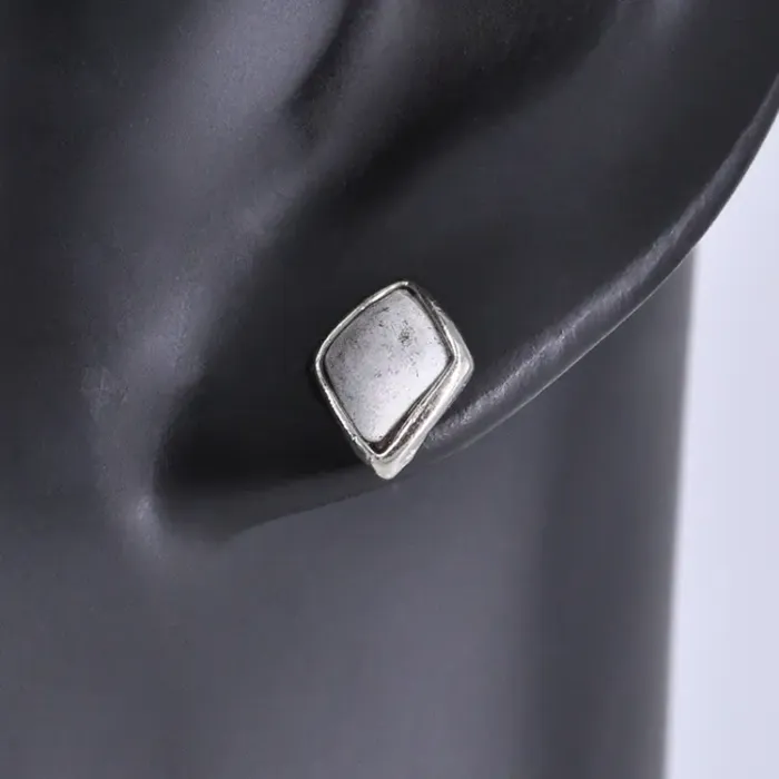 Материал и изготовление: Бижутерный сплав с покрытием под серебро, пластиковые вставки, замок типа пусет (гвоздик).