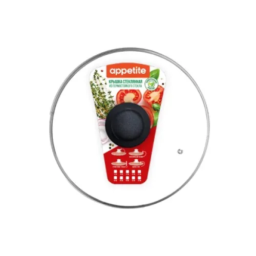 Стеклянная крышка диаметром 32 см от бренда Appetite предназначена для использования с кастрюлями и сковородами соответствующего размера. Изделие обеспечивает контроль за процессом приготовления благодаря прозрачности стекла и оснащено пароотводом для регулирования давления.