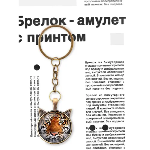 Брелок Тигр — это стильный аксессуар, который станет отличным дополнением к ключам или сумке. Изготовленный из бижутерного сплава с прочным покрытием под бронзу, он отличается долговечностью и привлекательным внешним видом. Изображение тигра защищено выпуклой стеклянной линзой, что придаёт изделию особый шарм. В комплект входит кольцо для ключей, что делает его практичным в использовании. Упаковка выполнена из прозрачного полипропилена без подвеса, что позволяет легко хранить и транспортировать брелок.