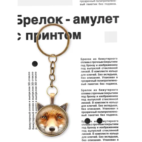 Брелок Лиса — это стильный аксессуар, который станет отличным дополнением к ключам или сумке. Изготовленный из бижутерного сплава с прочным покрытием под бронзу, он отличается долговечностью и привлекательным внешним видом. Изображение лисы защищено выпуклой стеклянной линзой, что придаёт изделию особую выразительность.