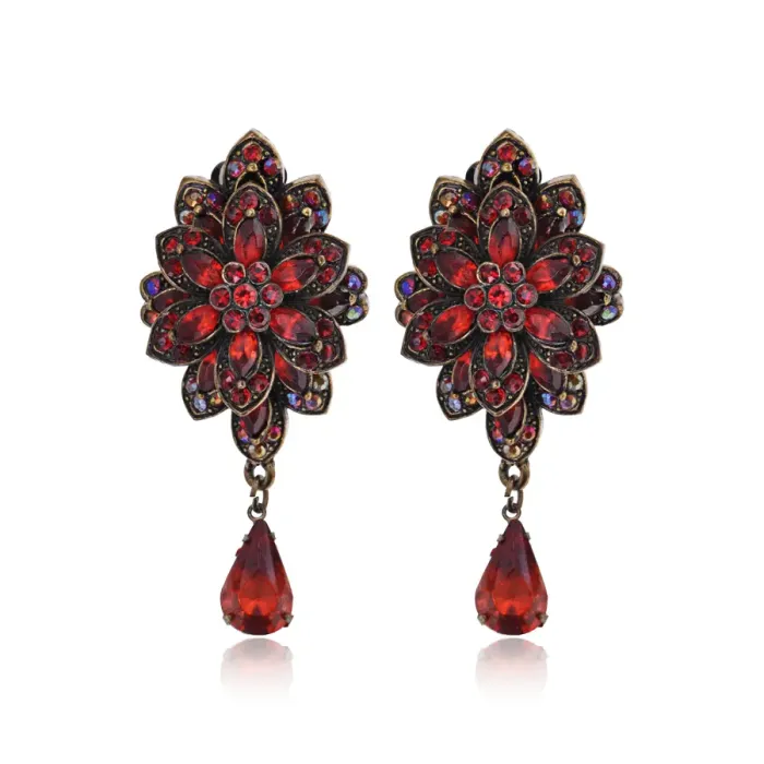 Серьги-клипсы Георгина, 6х2,5см, цвет красный UD334