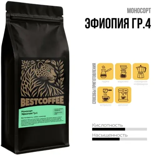Происхождение: Эфиопия, регион Сидамо, высота 1600–1900 метров над уровнем моря