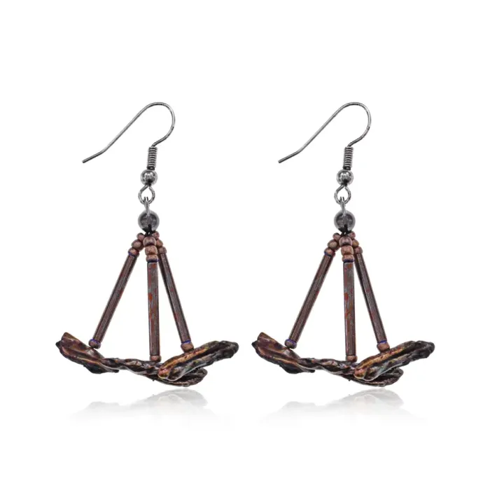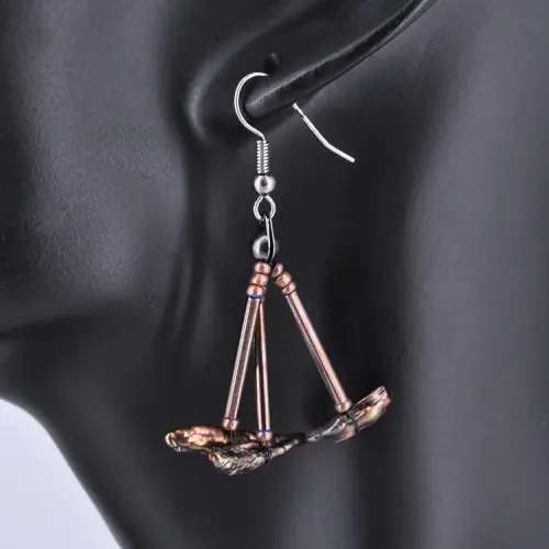 Серьги в форме молотка из металла с покрытием под медь и серебро. Тип замка — петля (крючок).