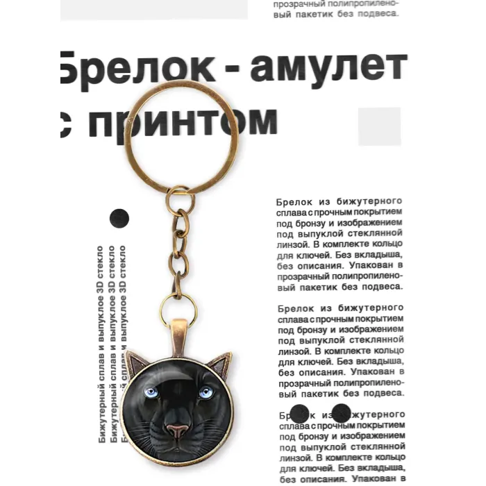 Брелок Пантера — стильный аксессуар, который станет не только практичным дополнением к ключам, но и выразительным элементом стиля. Изготовленный из бижутерного сплава с прочным покрытием под бронзу, он обладает долговечностью и привлекательным внешним видом. Изображение под выпуклой стеклянной линзой добавляет изысканности и оригинальности. В комплект входит кольцо для ключей, что делает его удобным в использовании. Упаковка в прозрачный полипропиленовый пакетик придаёт товару аккуратный вид, идеально подходящий для подарка или личного использования.