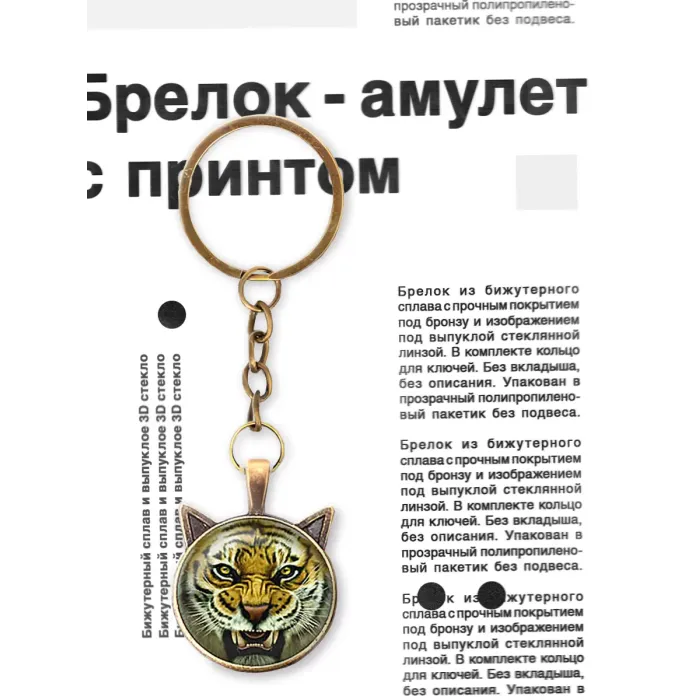 Брелок Тирг — стильный аксессуар, который станет не только практичным дополнением к ключам, но и оригинальным украшением. Изготовленный из бижутерного сплава с прочным покрытием под бронзу, он обладает долговечностью и привлекательным внешним видом. Изображение под выпуклой стеклянной линзой добавляет уникальности и шарма. В комплекте имеется кольцо для ключей, что делает использование брелока удобным. Упаковка выполнена в виде прозрачного полипропиленового пакетика без подвеса, что позволяет сохранить товар в идеальном состоянии до момента использования.