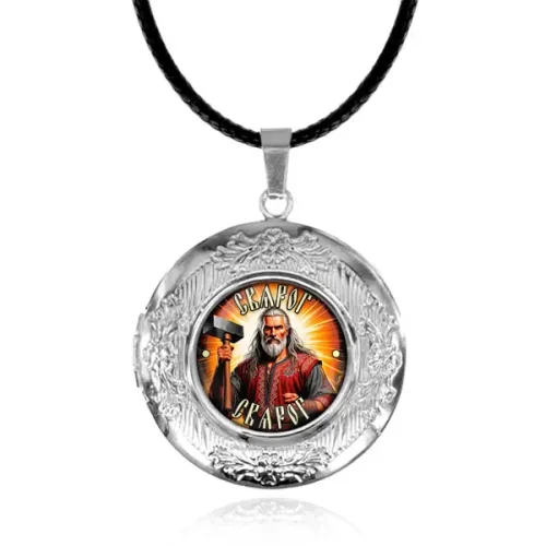 Арома-амулет «Славянские боги» с изображением Сварога — это стильный аксессуар, который не только украсит, но и наполнит пространство энергией. Изготовленный из бижутерного сплава с покрытием под серебро, кулон имеет диаметр 36х33 мм и защищён выпуклой стеклянной линзой диаметром 20 мм. В комплекте: полипропиленовый пакет, подложка, этикетка и шнурок с застёжкой. Сварог олицетворяет огонь и созидание, являясь символом семейного очага и кузнечного мастерства. Этот амулет станет отличным подарком для ценителей славянской культуры или просто для создания уюта в доме.