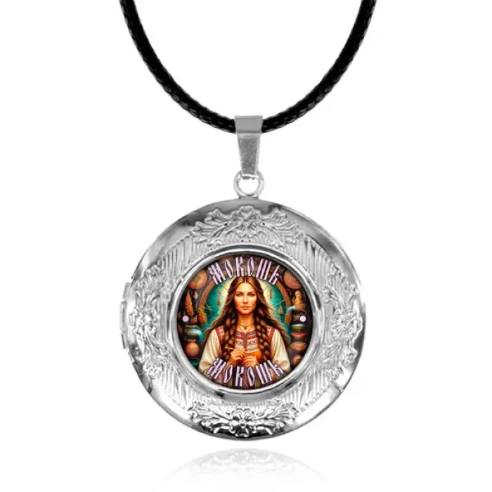 Арома-амулет «Славянские боги Мокошь» выполнен из бижутерного сплава с покрытием под серебро, создавая уникальный аксессуар для создания атмосферы уюта и гармонии. Диаметр кулона составляет 36х33 мм, а изображение защищено выпуклой стеклянной линзой диаметром 20 мм. В комплект входят полипропиленовый пакет, подложка, этикетка и шнурок с застёжкой, а также впитывающий шарик для аромата.
