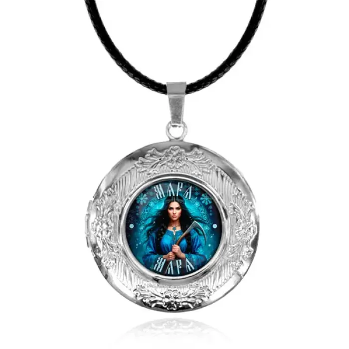 Арома-амулет «Славянские боги Мара» — это уникальное украшение из бижутерного сплава с покрытием под серебро, которое сочетает в себе эстетику и глубокий смысл. Диаметр кулона составляет 36х33 мм, а изображение богини смерти и перерождения защищено выпуклой стеклянной линзой диаметром 20 мм. Каждый амулет упакован в полипропиленовый пакет с подложкой и этикеткой, дополнен шнурком с застёжкой и впитывающим шариком для аромата.