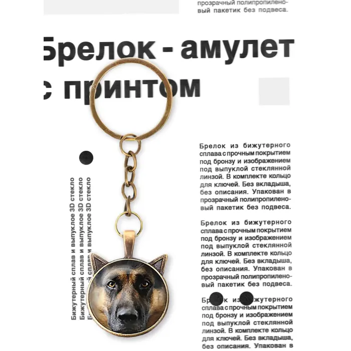 Брелок Овчарка BK-ALK720 — стильный аксессуар, который станет отличным дополнением к ключам или сумке. Изготовленный из бижутерного сплава с прочным покрытием под бронзу, он не только привлекает внимание своим дизайном, но и отличается долговечностью. Изображение под выпуклой стеклянной линзой придаёт брелку особую выразительность. В комплекте предусмотрено кольцо для ключей, что делает его удобным в использовании. Упаковка выполнена в виде прозрачного полипропиленового пакетика без подвеса, что позволяет сохранить товар в идеальном состоянии до момента использования.