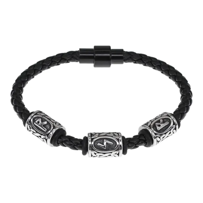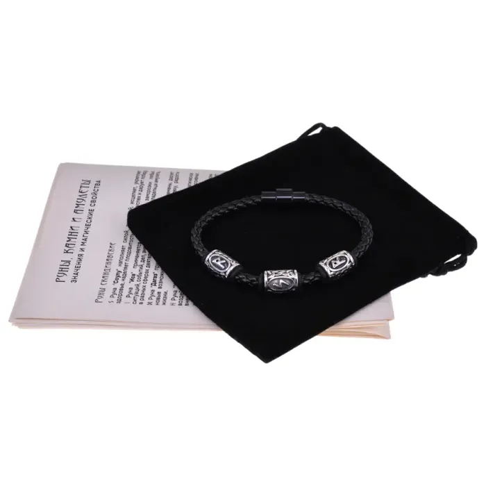 - Размеры рунических бусин составляют 13х10 мм, а толщина браслета — 5 мм, что делает его заметным акцентом в любом образе.