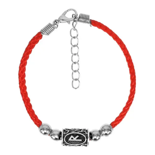 Браслет-амулет красного цвета с бусиной, на которую нанесена руна Райдо.
