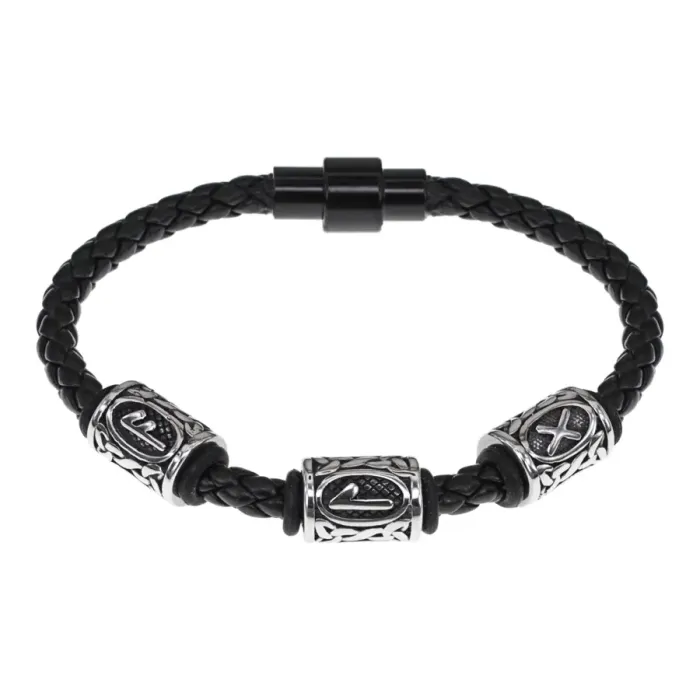 Браслет с рунической формулой из натуральной кожи и стали с магнитным замком.