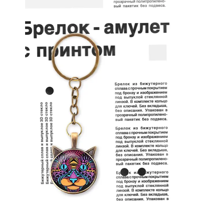 Брелок Кот — это стильный аксессуар, который станет отличным дополнением к ключам или сумке. Изготовленный из бижутерного сплава с прочным покрытием под бронзу, он привлекает внимание своим оригинальным дизайном и изображением под выпуклой стеклянной линзой. Комплектуется кольцом для ключей, что делает его удобным в использовании. Упаковка выполнена в виде прозрачного полипропиленового пакетика без подвеса, что позволяет сохранить товар в идеальном состоянии до момента использования. Этот брелок не только практичен, но и может стать символом любви к кошкам.