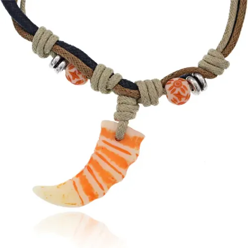 Сувенирный амулет в виде рога на шнурке. Материал — пластик и бижутерный сплав с покрытием под серебро.