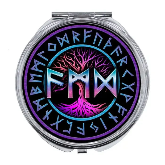 Складное зеркало из металла с печатью в виде рунических символов.