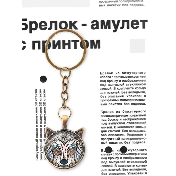 Брелок Волк — стильный аксессуар, который сочетает в себе элегантность и символику силы. Изготовленный из бижутерного сплава с прочным покрытием под бронзу, он привлекает внимание своим уникальным дизайном с изображением волка под выпуклой стеклянной линзой.