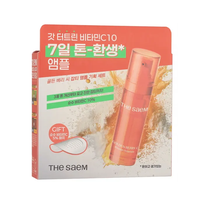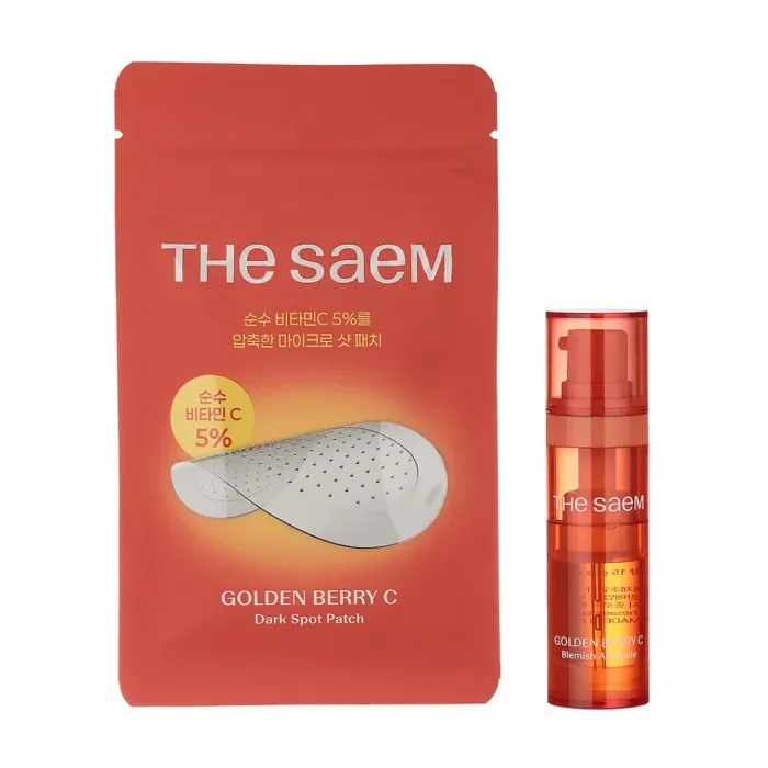 Набор уходовый для лица с физалисом Golden Berry C Blemish Ampoule Special Set от The Saem — это комплексное решение для борьбы с различными проблемами кожи. В набор входит сыворотка и патчи с микроиглами, которые содержат высокую концентрацию активных ингредиентов, включая витамин С и экстракт золотой ягоды.