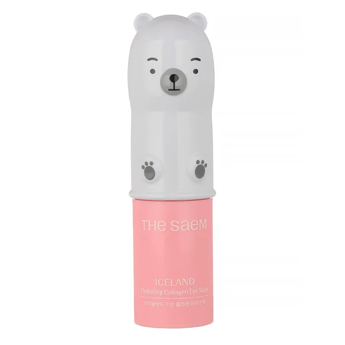 Охлаждающий бальзам-стик для кожи вокруг глаз Iceland Hydrating Collagen Eye Stick от бренда The Saem разработан для интенсивного увлажнения и питания кожи. В его составе ледниковая вода и шесть видов коллагена, которые насыщают кожу необходимыми питательными веществами, улучшают кровообращение и повышают тонус и эластичность. Бальзам также содержит гиалуроновую кислоту, которая обеспечивает длительное увлажнение, а ксилит дарит освежающее ощущение прохлады.