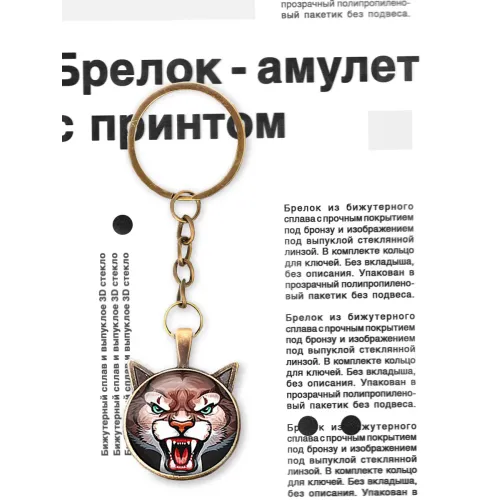 Брелок Волчица — стильный аксессуар, который привносит в повседневную жизнь нотки дикой природы. Изготовленный из бижутерного сплава с прочным покрытием под бронзу, он не только красив, но и долговечен. Изображение под выпуклой стеклянной линзой добавляет глубину и выразительность дизайну. В комплекте предусмотрено кольцо для ключей, что делает его практичным выбором для хранения важных мелочей. Упакован в прозрачный полипропиленовый пакетик без подвеса, брелок станет отличным подарком или дополнением к личной коллекции сувениров.