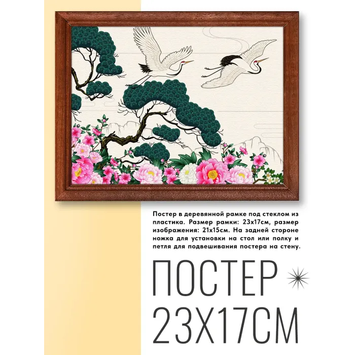 Постер в деревянной рамке с изображением журавлей — это идеальное решение для декорирования любого пространства. Этот стильный элемент интерьера привнесет нотку изящества и гармонии, символизируя долголетие и удачу. Основные особенности: